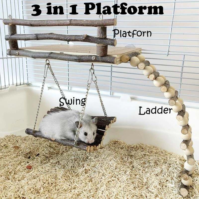 Fun and interactive, the platform and swing set adds climbing, swinging, and exploring opportunities to your hamster’s cage. Great for exercise, enrichment, and keeping your floof active and entertained.