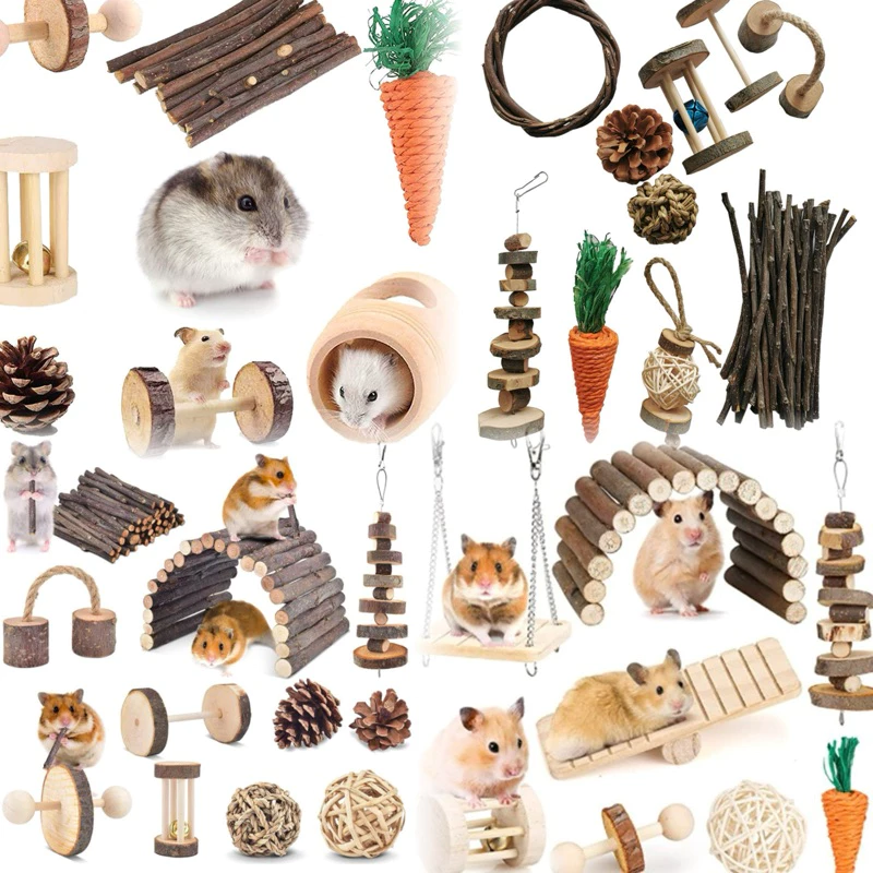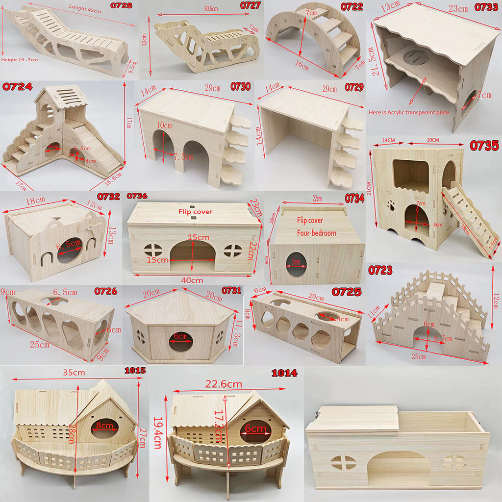 Sturdy, and chew-safe, this solid wood set offers a cozy hideout, climbing bridge, and fun tunnel set pieces. Perfect for exploring, nesting, and adding enrichment to your hamster’s cage.