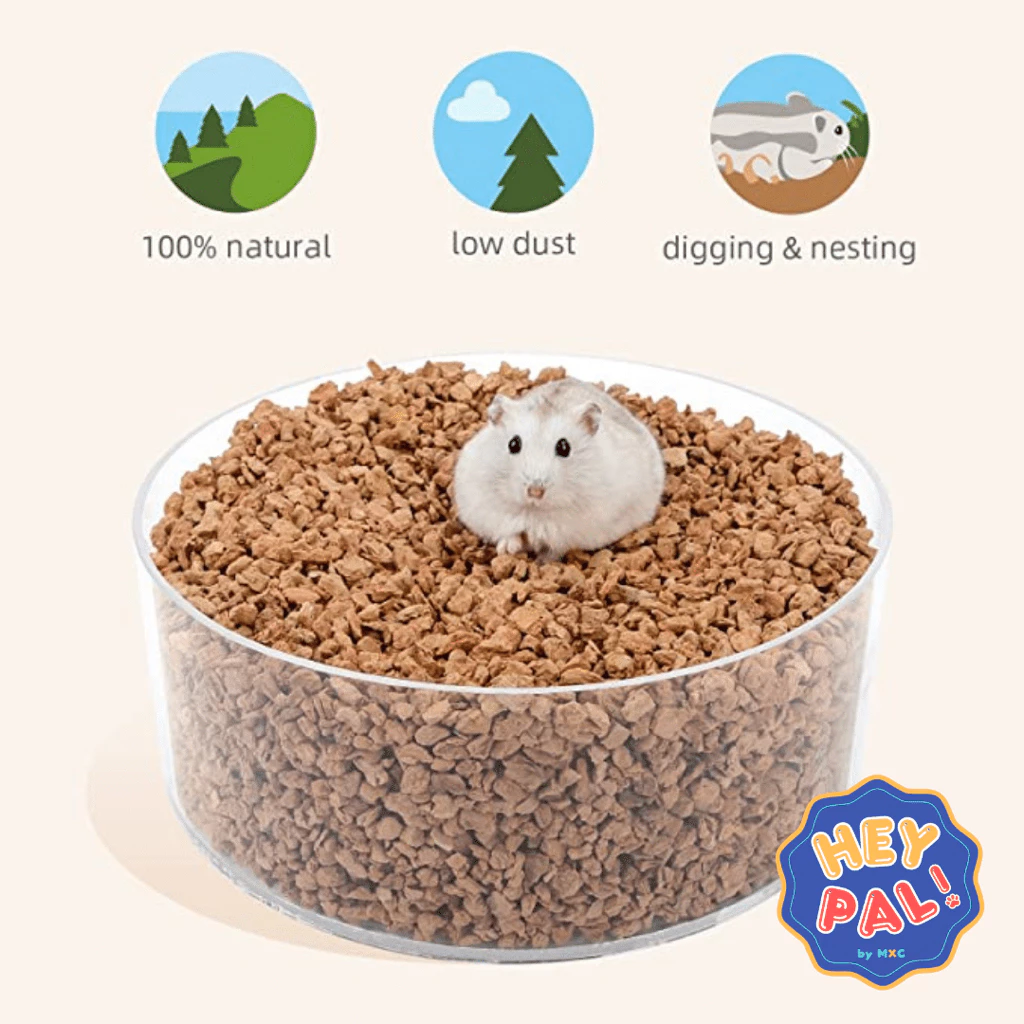 Light, absorbent, and safe, soft cork bedding keeps your hamster’s cage clean and cozy. Perfect for burrowing, nesting, and creating a comfortable, healthy habitat for your floof.